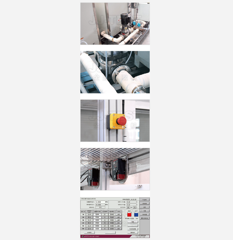 ① 变频增压技术,只在试样端施加压力,冷热水介质箱及前端管路均为常压状态,兼具安全性和长期稳定性。